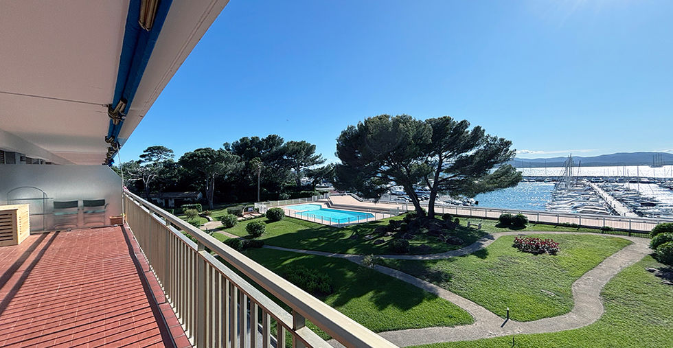 donnant sur la piscine, le port et la mer.